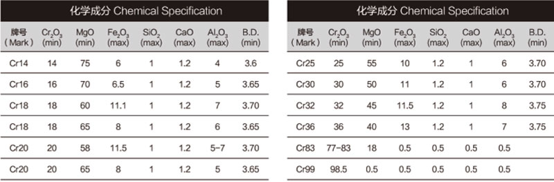 高、結(jié)晶大、高溫體積穩(wěn)定、抗渣性優(yōu)良等特點,是制作再結(jié)合及半再結(jié)合電熔鎂鉻磚、鎂鉻質(zhì)搗打料、中間包涂料等產(chǎn)品的理想原料,其制磚后